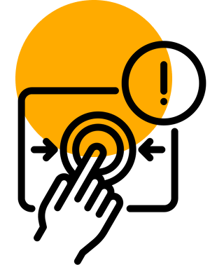 A blue circular icon featuring a hand interacting with a sensor device, symbolizing touchless technology.